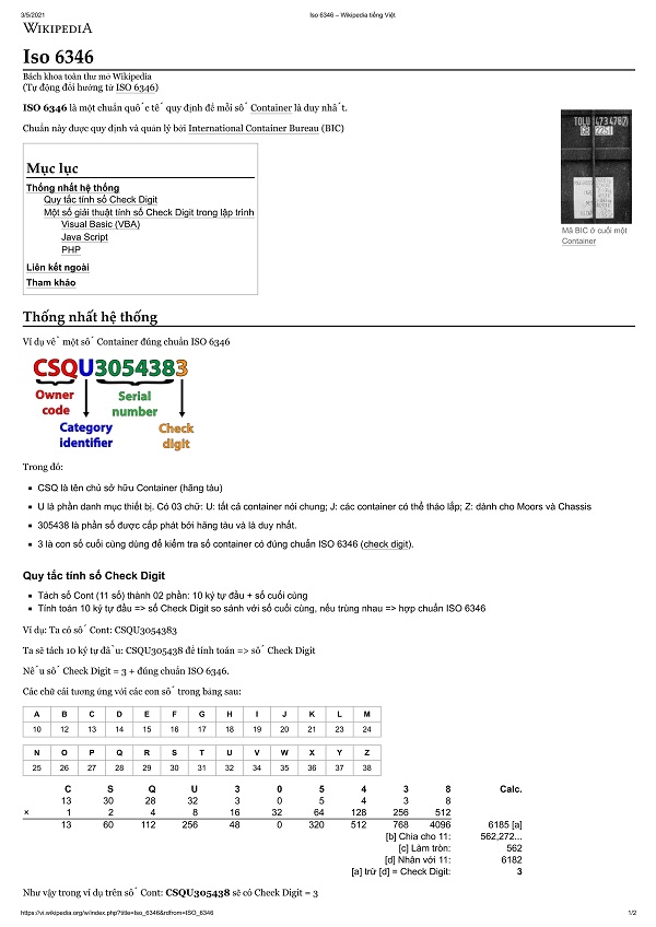 Lấy tổng số ở cột (e) rồi đem chia cho 11, số dư của phép tính chính là số kiểm tra container mà bạn cần tìm: