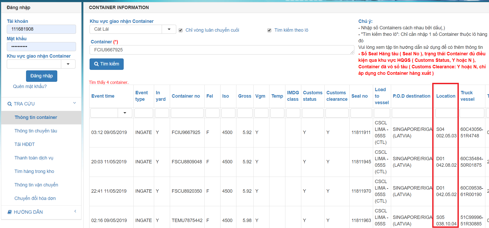 Các bước tra cứu container cụ thể như sau: