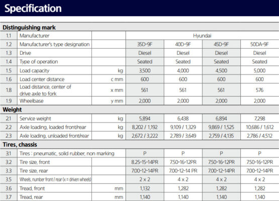 Xe nâng dầu Hyundai 5 Tấn 50DA-9F