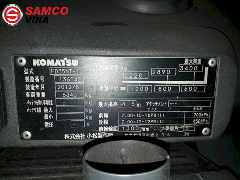 Xe nâng 3.5 tấn Komatsu FD35NT-10 được SAMCOVINA nhập khẩu nguyên chiếc từ Nhật Bản và trải qua quá trình kiểm tra nghiêm ngặt của đội ngũ kỹ sư, đảm bảo xe 100% vận hành tốt.